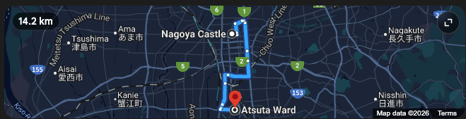 Nagoya Atsuta Ward (15Km from Nagoya Castle)